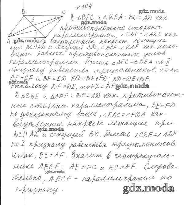 ОТВЕТ на задание № 104 Учебник по Геометрии 8 класс Мерзляк Алгоритм успеха