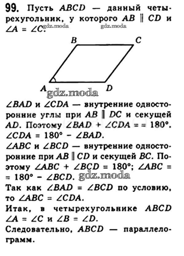 ОТВЕТ на задание № 99 Учебник по Геометрии 8 класс Мерзляк Алгоритм успеха