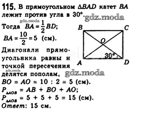 ОТВЕТ на задание № 115 Учебник по Геометрии 8 класс Мерзляк Алгоритм успеха