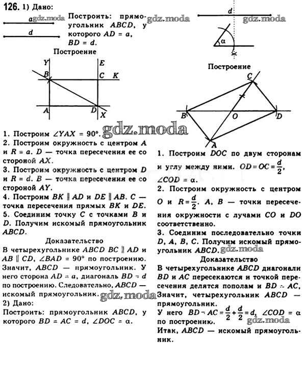 ОТВЕТ на задание № 126 Учебник по Геометрии 8 класс Мерзляк Алгоритм успеха