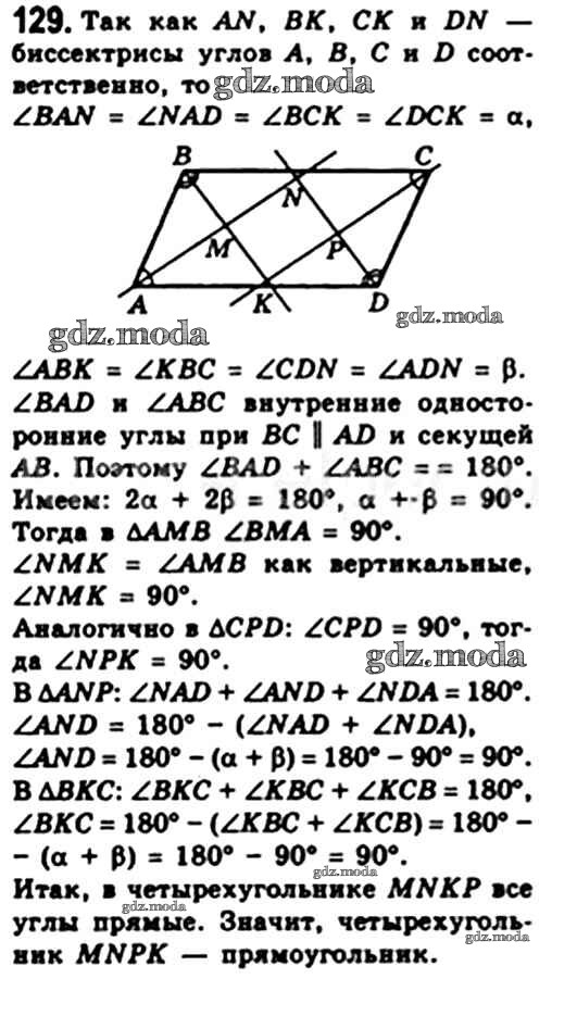 ОТВЕТ на задание № 129 Учебник по Геометрии 8 класс Мерзляк Алгоритм успеха