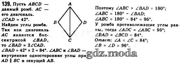 ОТВЕТ на задание № 139 Учебник по Геометрии 8 класс Мерзляк Алгоритм успеха