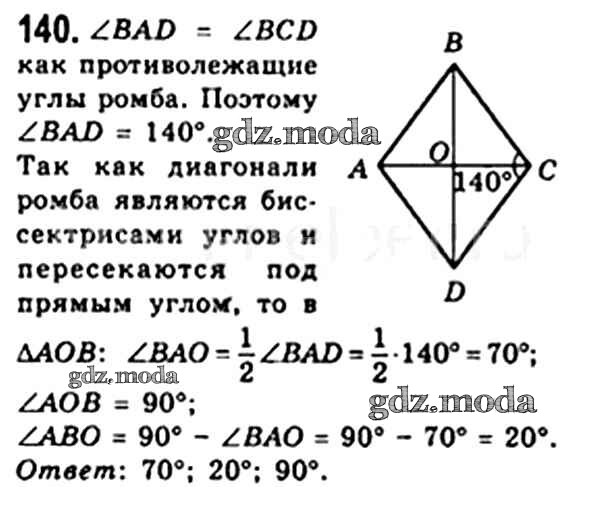ОТВЕТ на задание № 140 Учебник по Геометрии 8 класс Мерзляк Алгоритм успеха
