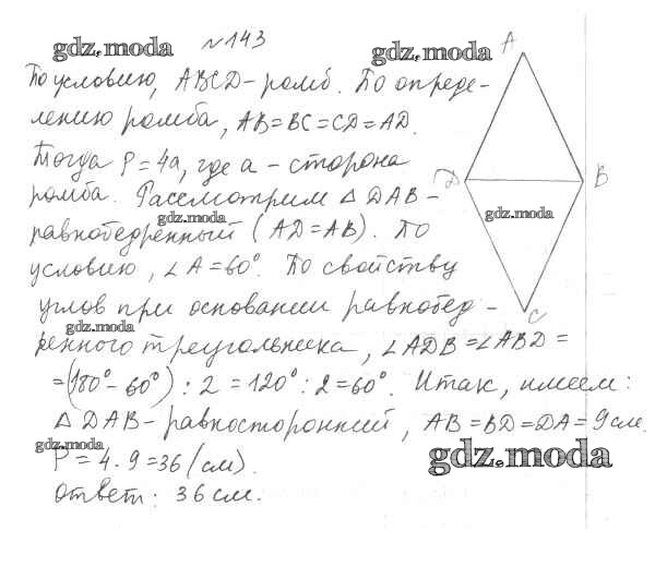 ОТВЕТ на задание № 143 Учебник по Геометрии 8 класс Мерзляк Алгоритм успеха