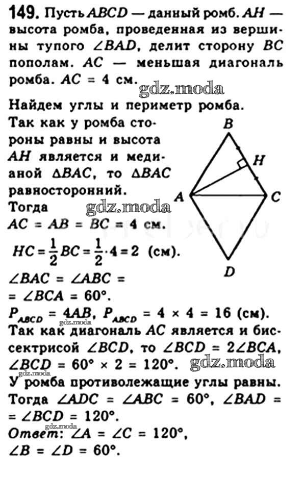 ОТВЕТ на задание № 149 Учебник по Геометрии 8 класс Мерзляк Алгоритм успеха
