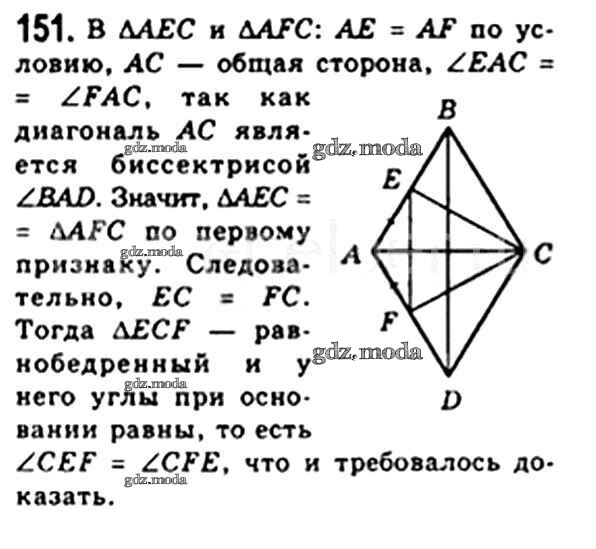 ОТВЕТ на задание № 151 Учебник по Геометрии 8 класс Мерзляк Алгоритм успеха