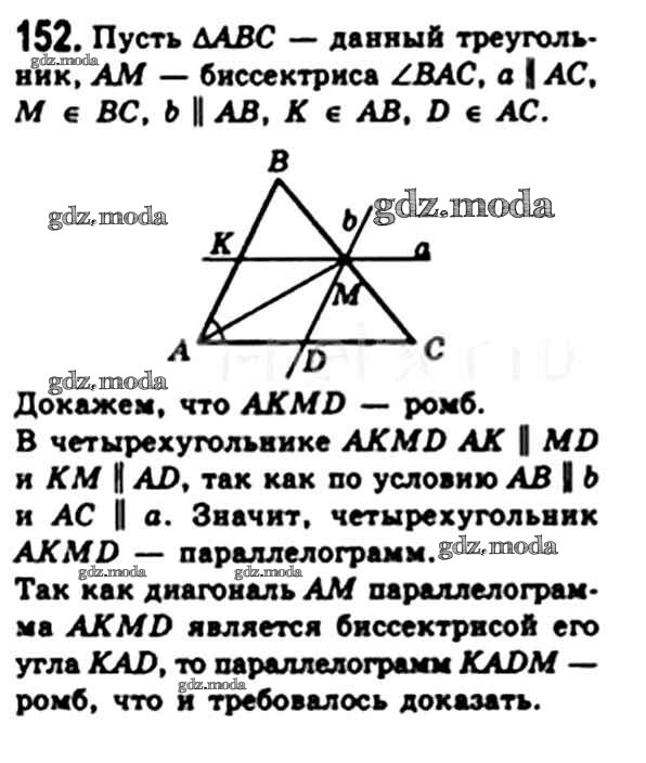 ОТВЕТ на задание № 152 Учебник по Геометрии 8 класс Мерзляк Алгоритм успеха