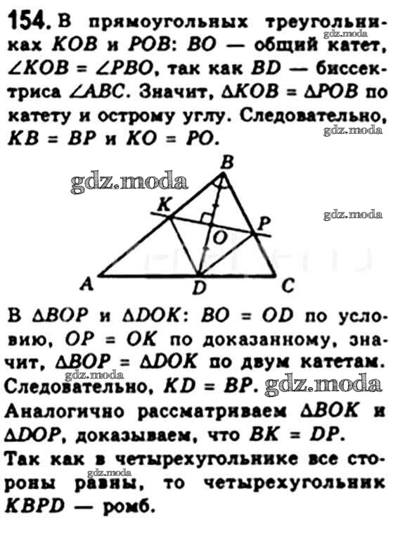 ОТВЕТ на задание № 154 Учебник по Геометрии 8 класс Мерзляк Алгоритм успеха