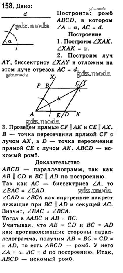 ОТВЕТ на задание № 158 Учебник по Геометрии 8 класс Мерзляк Алгоритм успеха