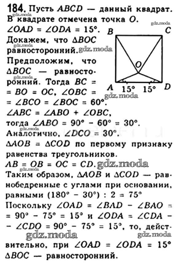 ОТВЕТ на задание № 184 Учебник по Геометрии 8 класс Мерзляк Алгоритм успеха