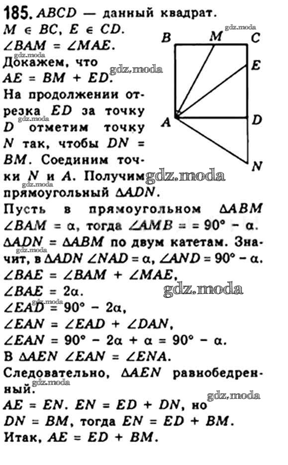ОТВЕТ на задание № 185 Учебник по Геометрии 8 класс Мерзляк Алгоритм успеха