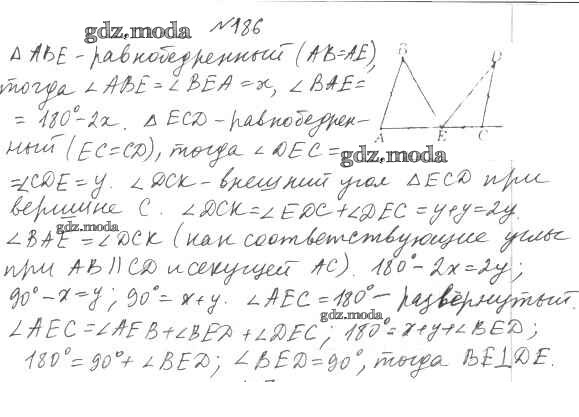 ОТВЕТ на задание № 186 Учебник по Геометрии 8 класс Мерзляк Алгоритм успеха