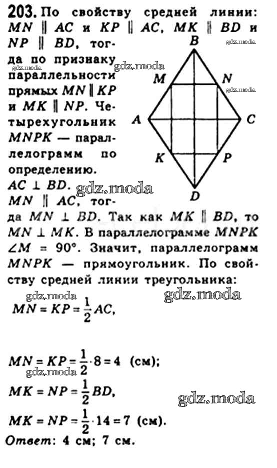 ОТВЕТ на задание № 203 Учебник по Геометрии 8 класс Мерзляк Алгоритм успеха