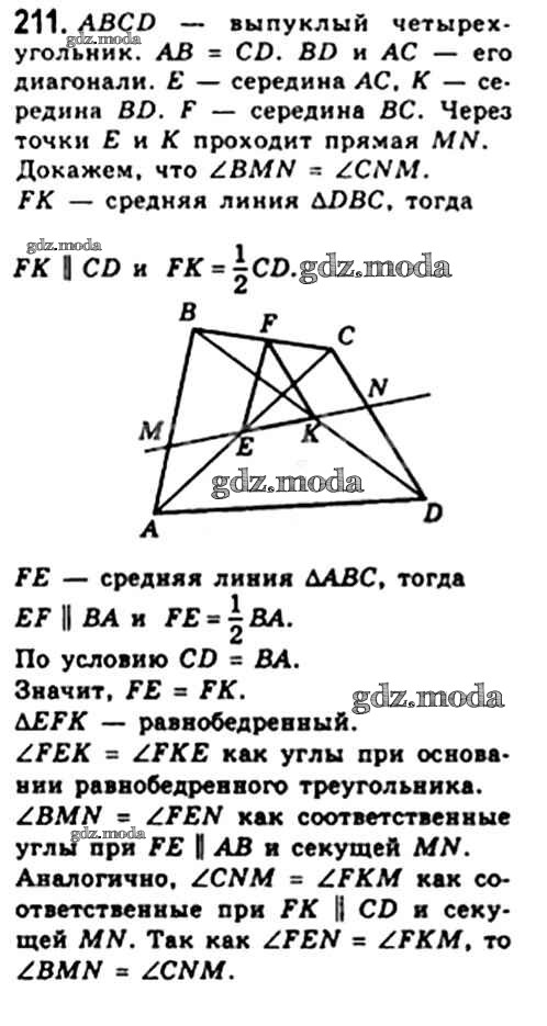 ОТВЕТ на задание № 211 Учебник по Геометрии 8 класс Мерзляк Алгоритм успеха