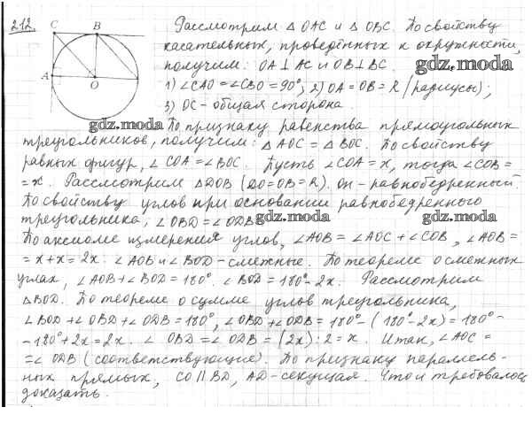 ОТВЕТ на задание № 212 Учебник по Геометрии 8 класс Мерзляк Алгоритм успеха