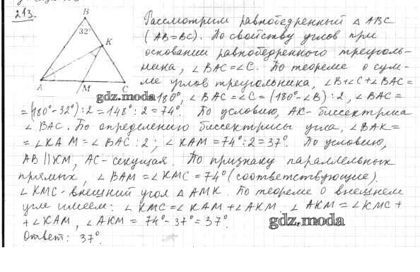ОТВЕТ на задание № 213 Учебник по Геометрии 8 класс Мерзляк Алгоритм успеха