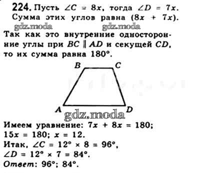 ОТВЕТ на задание № 224 Учебник по Геометрии 8 класс Мерзляк Алгоритм успеха