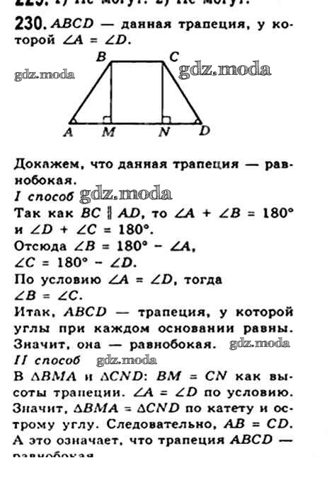 ОТВЕТ на задание № 230 Учебник по Геометрии 8 класс Мерзляк Алгоритм успеха