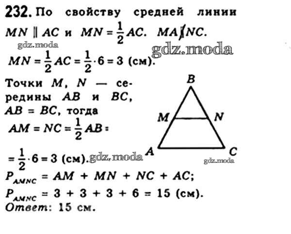 ОТВЕТ на задание № 232 Учебник по Геометрии 8 класс Мерзляк Алгоритм успеха