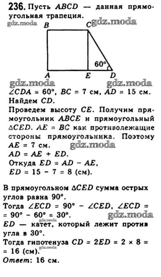 ОТВЕТ на задание № 236 Учебник по Геометрии 8 класс Мерзляк Алгоритм успеха