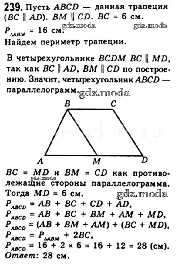 ОТВЕТ на задание № 239 Учебник по Геометрии 8 класс Мерзляк Алгоритм успеха