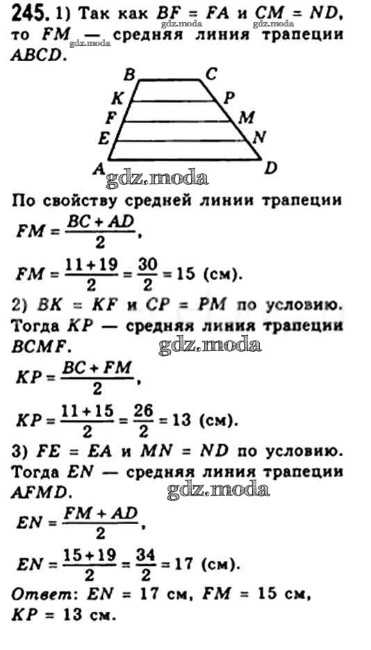 ОТВЕТ на задание № 245 Учебник по Геометрии 8 класс Мерзляк Алгоритм успеха