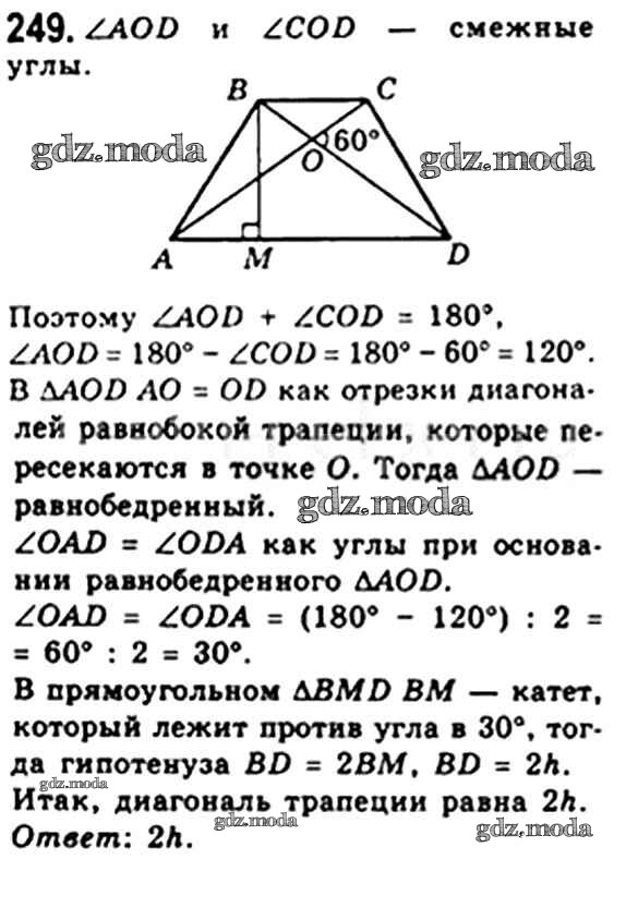 ОТВЕТ на задание № 249 Учебник по Геометрии 8 класс Мерзляк Алгоритм успеха