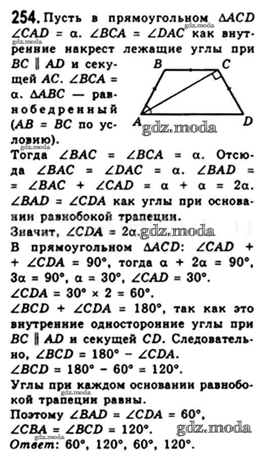 ОТВЕТ на задание № 254 Учебник по Геометрии 8 класс Мерзляк Алгоритм успеха