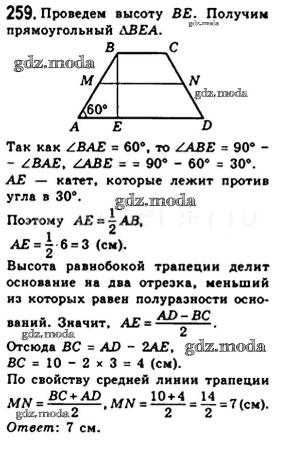 ОТВЕТ на задание № 259 Учебник по Геометрии 8 класс Мерзляк Алгоритм успеха