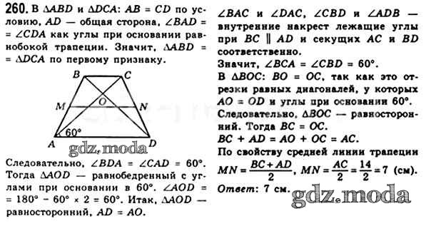 ОТВЕТ на задание № 260 Учебник по Геометрии 8 класс Мерзляк Алгоритм успеха
