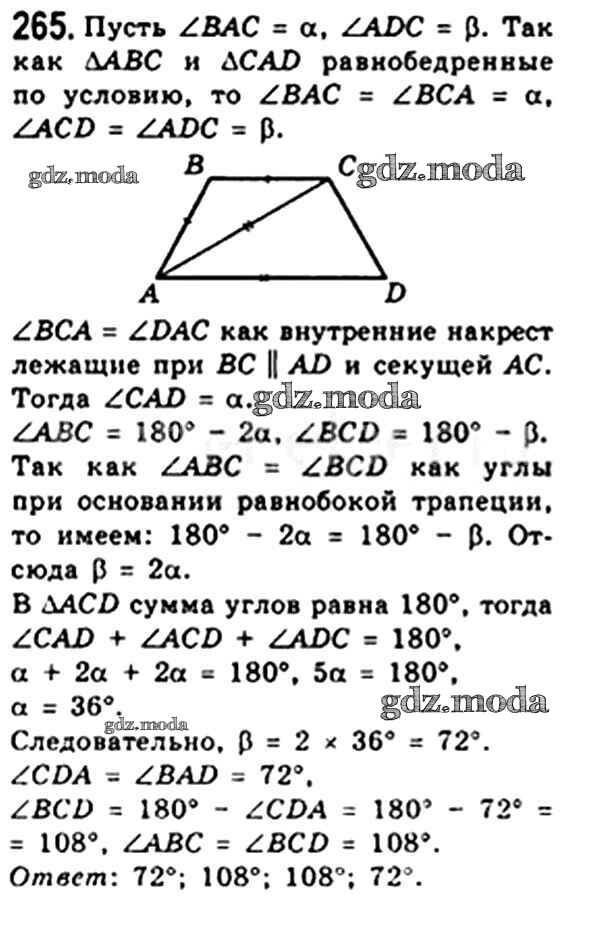 ОТВЕТ на задание № 265 Учебник по Геометрии 8 класс Мерзляк Алгоритм успеха