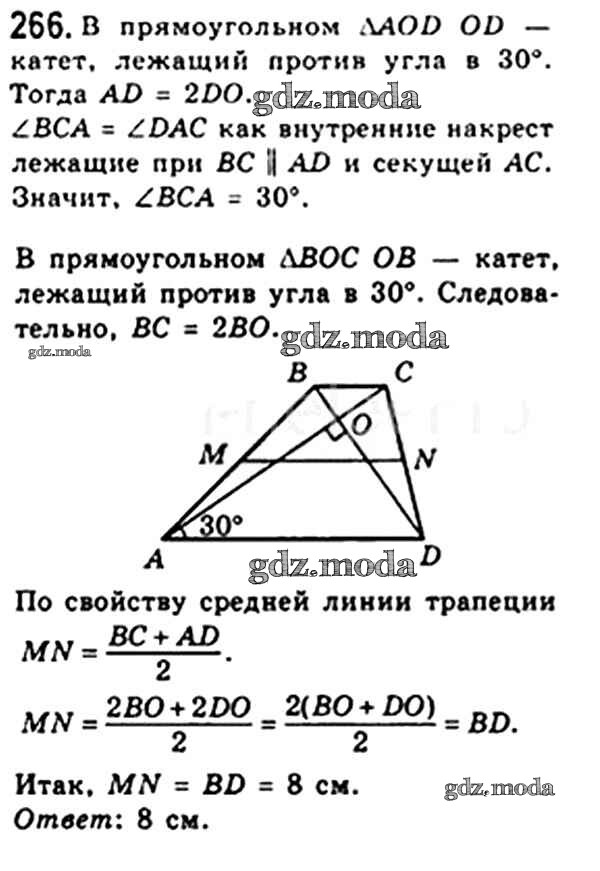 ОТВЕТ на задание № 266 Учебник по Геометрии 8 класс Мерзляк Алгоритм успеха