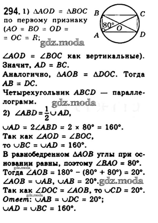 ОТВЕТ на задание № 294 Учебник по Геометрии 8 класс Мерзляк Алгоритм успеха