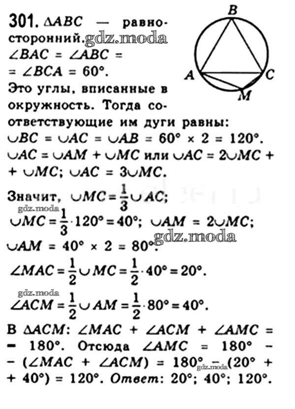 ОТВЕТ на задание № 301 Учебник по Геометрии 8 класс Мерзляк Алгоритм успеха