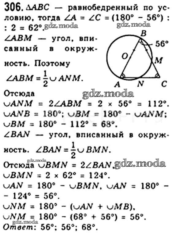 ОТВЕТ на задание № 306 Учебник по Геометрии 8 класс Мерзляк Алгоритм успеха