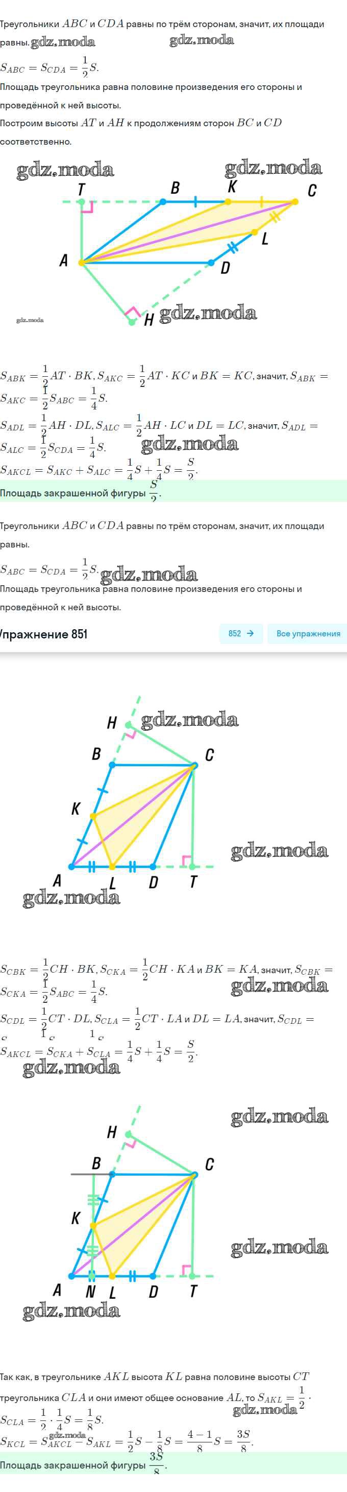 ОТВЕТ на задание № 851 Учебник по Геометрии 8 класс Мерзляк Алгоритм успеха