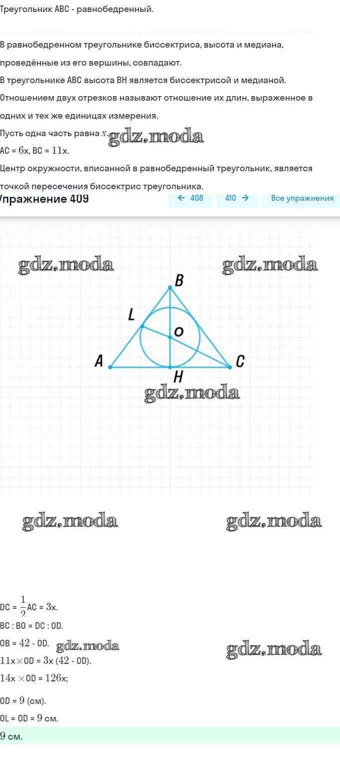 ОТВЕТ на задание № 409 Учебник по Геометрии 8 класс Мерзляк Алгоритм успеха
