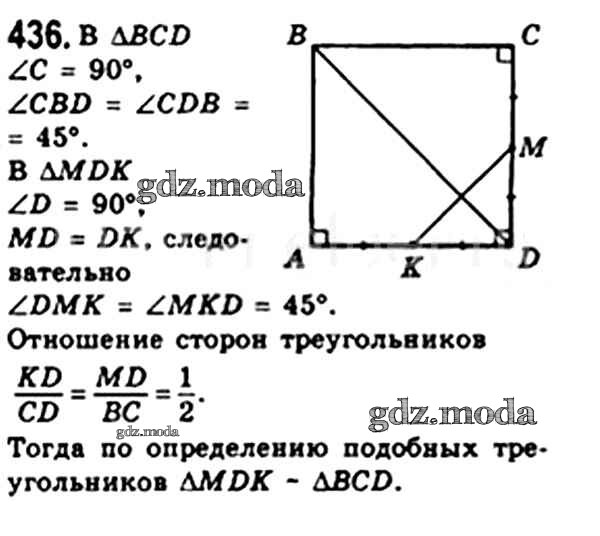 ОТВЕТ на задание № 436 Учебник по Геометрии 8 класс Мерзляк Алгоритм успеха