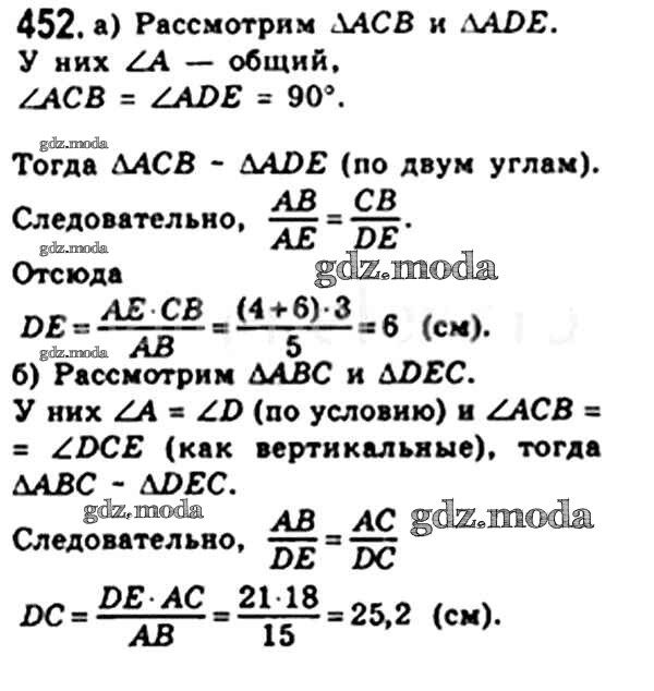 ОТВЕТ на задание № 452 Учебник по Геометрии 8 класс Мерзляк Алгоритм успеха