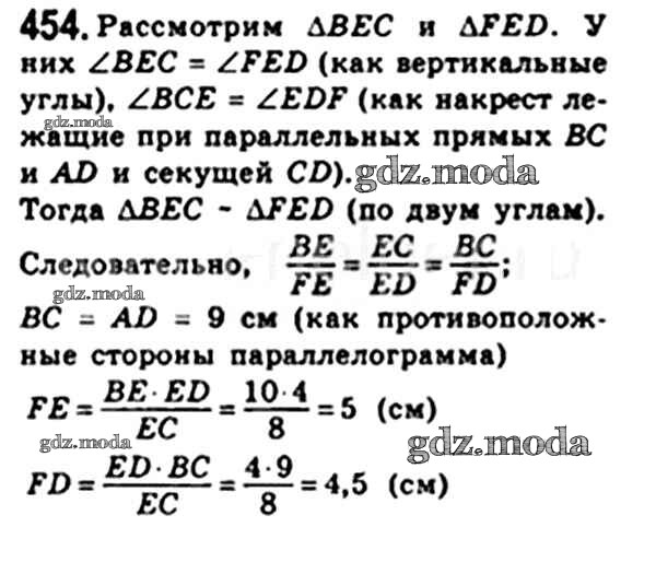 ОТВЕТ на задание № 454 Учебник по Геометрии 8 класс Мерзляк Алгоритм успеха