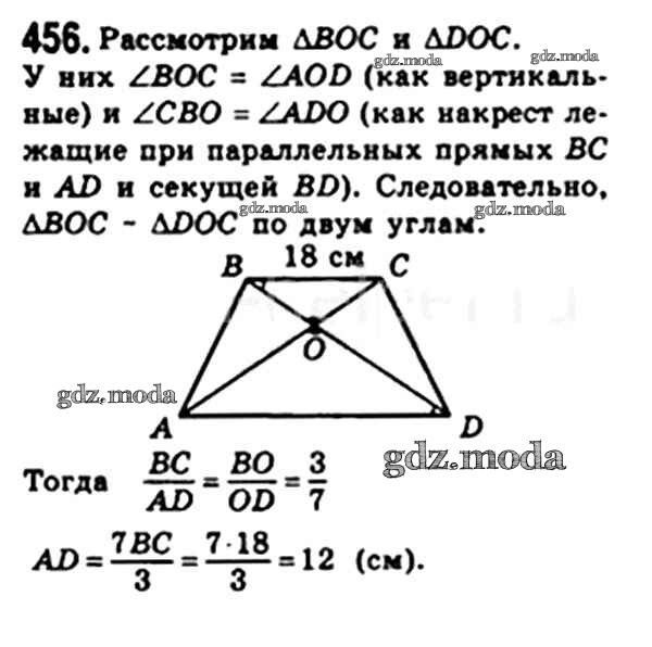 ОТВЕТ на задание № 456 Учебник по Геометрии 8 класс Мерзляк Алгоритм успеха