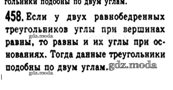 ОТВЕТ на задание № 458 Учебник по Геометрии 8 класс Мерзляк Алгоритм успеха