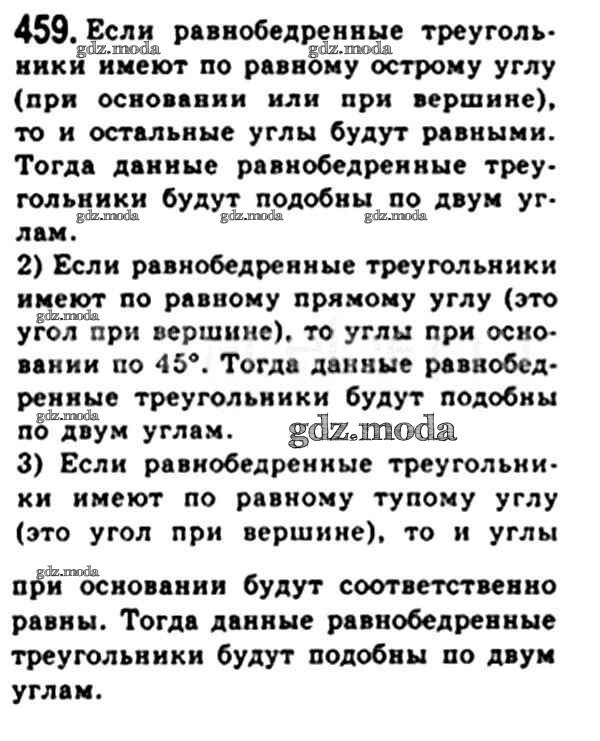 ОТВЕТ на задание № 459 Учебник по Геометрии 8 класс Мерзляк Алгоритм успеха