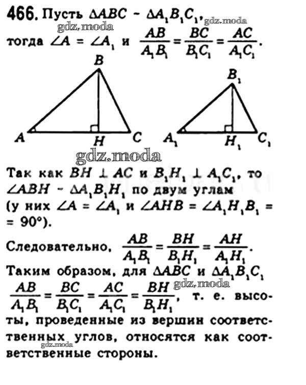 ОТВЕТ на задание № 466 Учебник по Геометрии 8 класс Мерзляк Алгоритм успеха