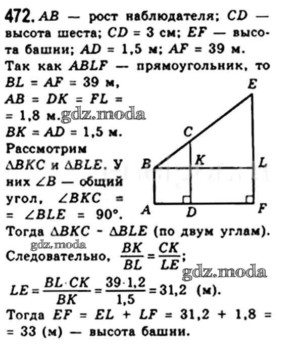 ОТВЕТ на задание № 472 Учебник по Геометрии 8 класс Мерзляк Алгоритм успеха