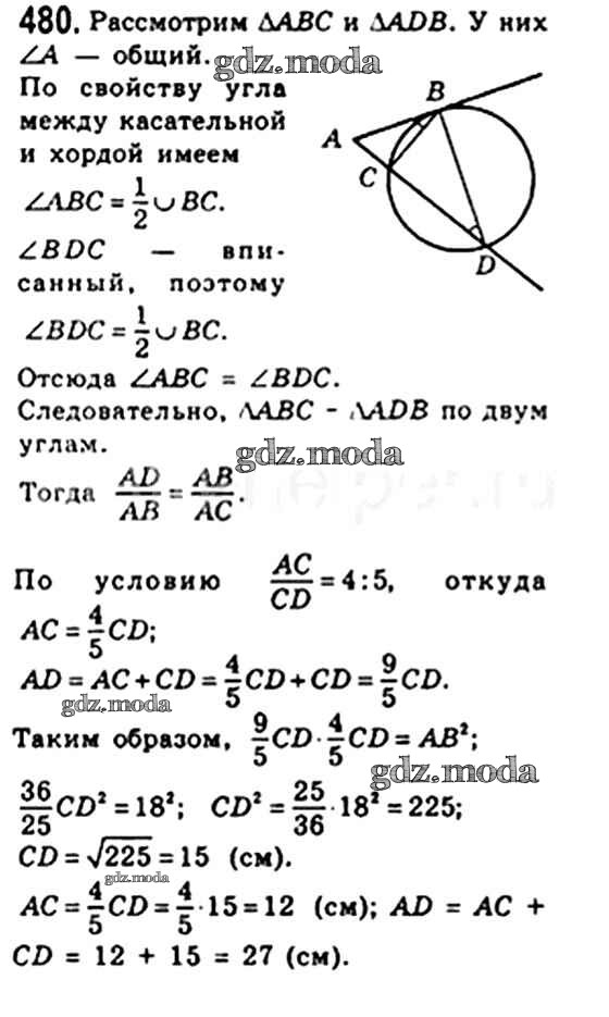 ОТВЕТ на задание № 480 Учебник по Геометрии 8 класс Мерзляк Алгоритм успеха