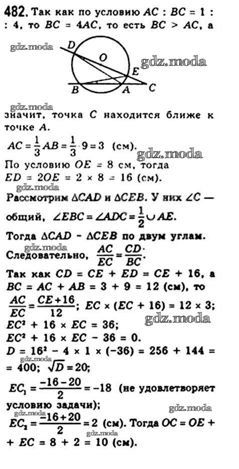 ОТВЕТ на задание № 482 Учебник по Геометрии 8 класс Мерзляк Алгоритм успеха