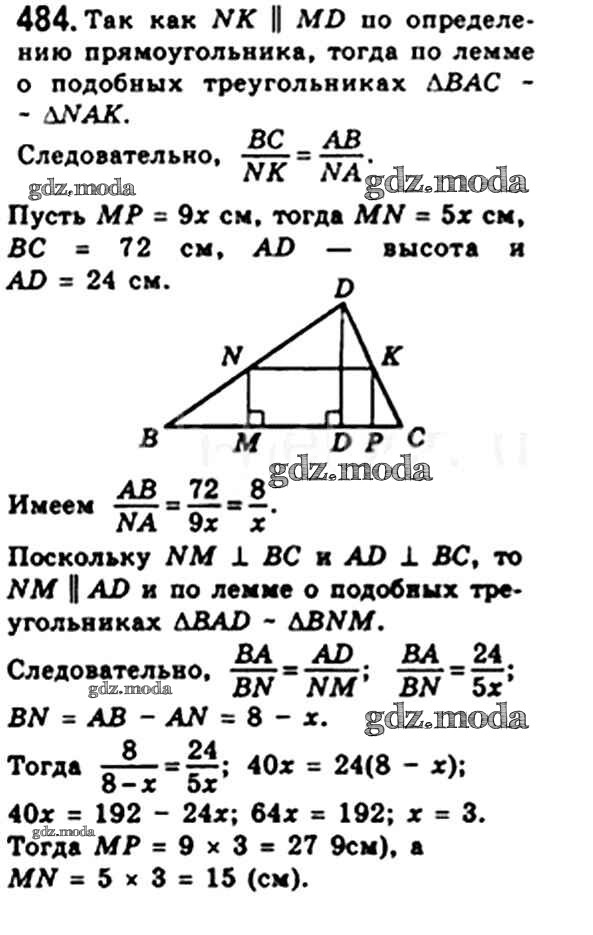 ОТВЕТ на задание № 484 Учебник по Геометрии 8 класс Мерзляк Алгоритм успеха