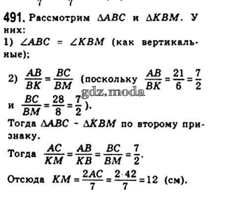 ОТВЕТ на задание № 491 Учебник по Геометрии 8 класс Мерзляк Алгоритм успеха