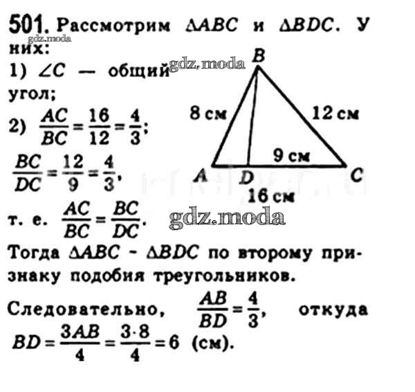 ОТВЕТ на задание № 501 Учебник по Геометрии 8 класс Мерзляк Алгоритм успеха